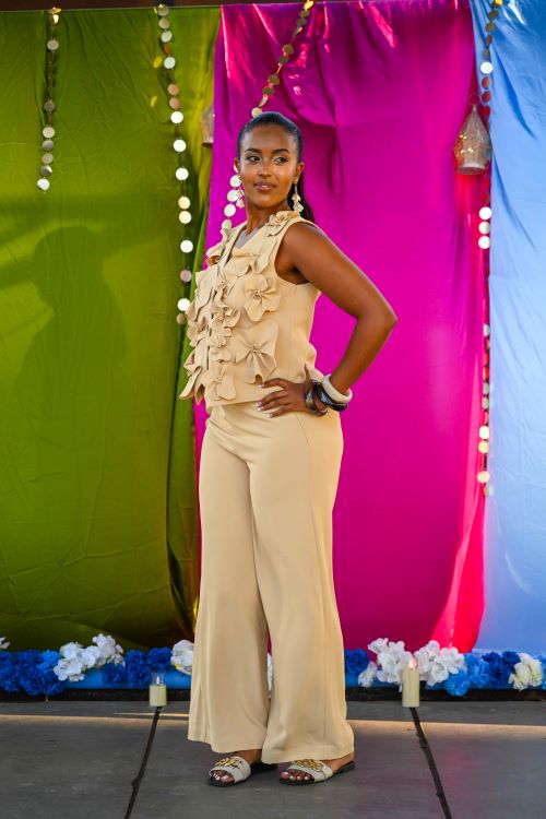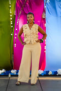 Your go-to choice for those endless summer days of fun and flair '500 Days of Summer' coords in beige! This playful set features an embossed flower patterned top paired with flowy pants. Perfect for adding a pop of sunshine to your wardrobe.