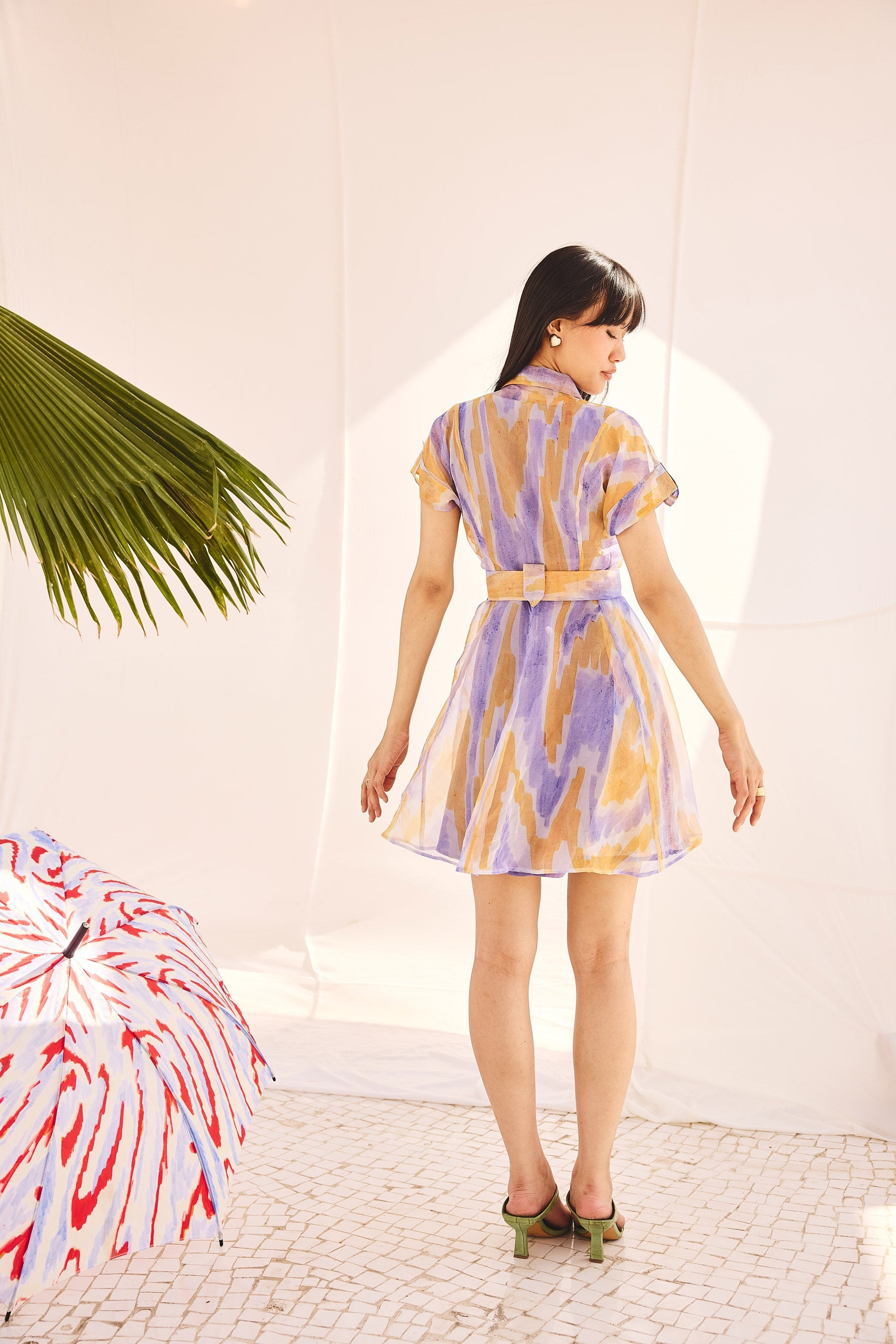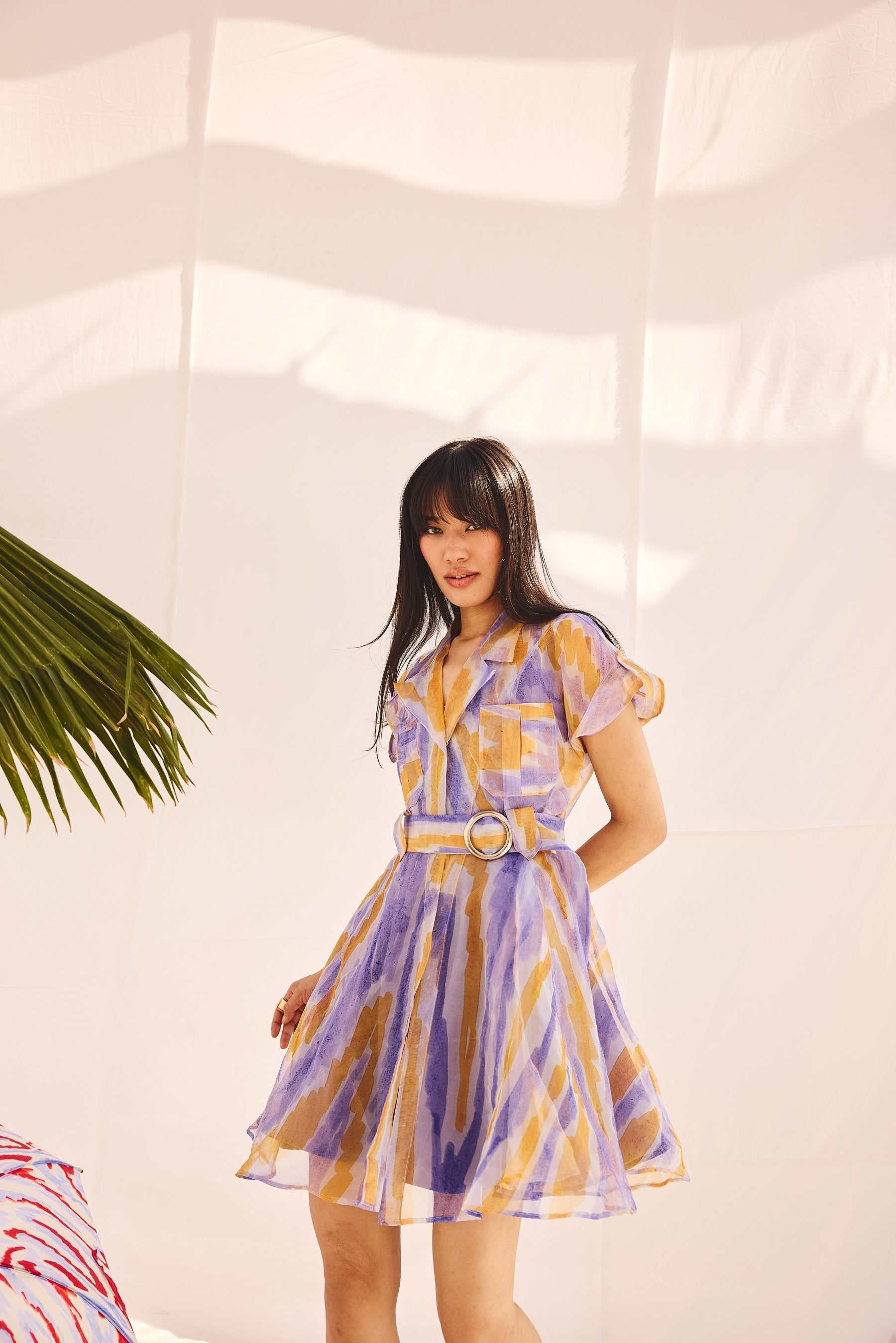 This is a short dress with sharp lapels, pockets, and frills at the bottom. It also includes a belt, adding structure to the outfit. It’s a stylish and functional choice for casual or semi-formal occasions.