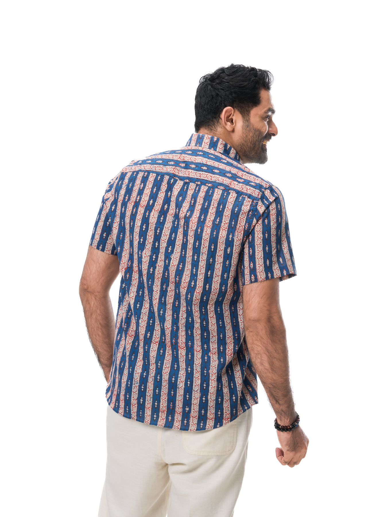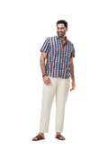 Indigo & Red Motif Border Print Shirt