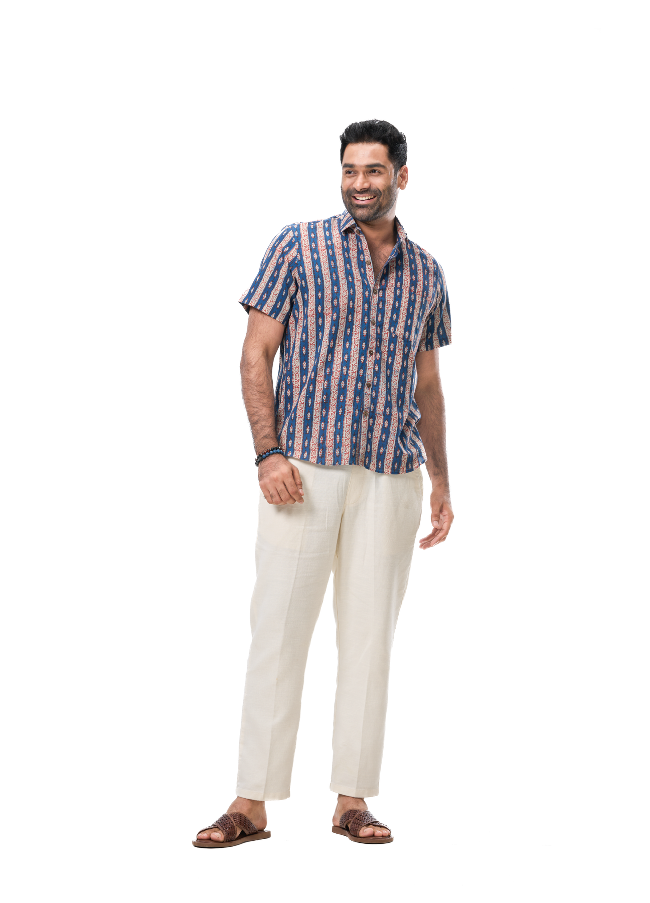 Featuring a striking combination of indigo hues and intricate red motif borders, this shirt is a perfect blend of tradition and modernity. Crafted from breathable, high-quality fabric, it offers all-day comfort while making a bold style statement. Ideal for casual outings or cultural events, pair it with classic chinos or denim for a polished look.